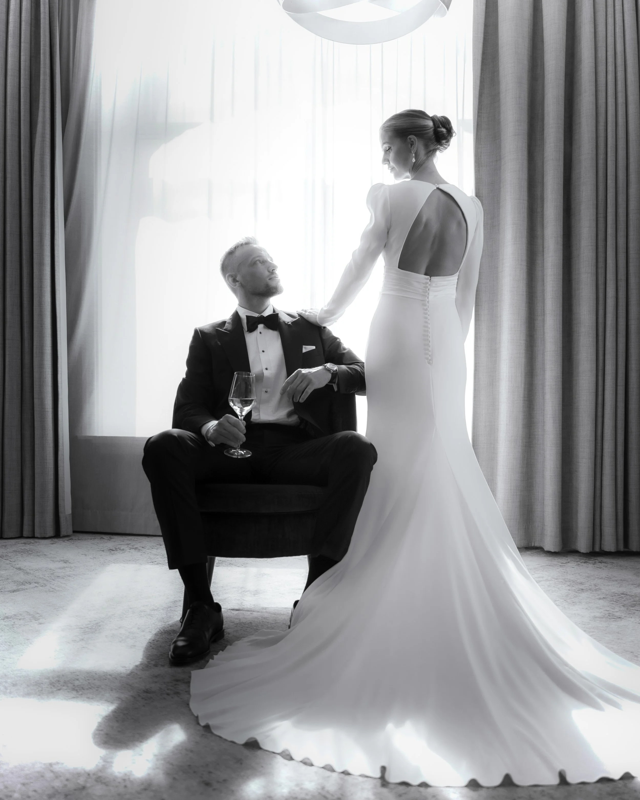 Katarina and Magnus celebrated their wedding in the heart of Oslo, beginning the day preparing at Karl Johan Hotel and continuing with a ceremony and party at Høymagasinet by Akershus Festning. The day was beautifully captured through a mix of romantic candid moments and striking, powerful statement shots, reflecting both the intimacy and grandeur of their celebration.